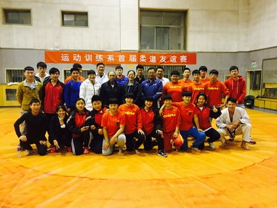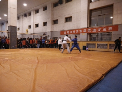为丰富校园文化生活,提高员工专项技能水平。11月10日晚7时,由运动训练系主办,系员工会承办的首届柔道比赛在球友会综合馆举行。运动训练系副主任郭丽娟老师、辅导员黄志高老师、王文武老师观看了本次比赛,裁判长由王朝丽老师担任。
