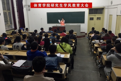 为进一步加强研究生学风建设,严肃课堂纪律,确保教学质量,2016年3月30日晚,球友会在一校区05101教室召开了研究生学风教育大会。副经理冯晓丽、2015级体育硕士辅导员王铁新、2015级学术型研究生辅导员王明明、研究生教学秘书张学兵及2015级研究生参加了本次会议。