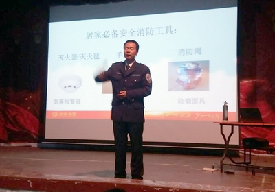 随后,席教官从大量的典型火灾等灾害性案例说起,借助实物和宣传画,结合工作、生活中的实际情况,生动详细地为大家讲述了干粉灭火器的使用方法、防毒防烟面具的正确操作以及火灾面前正确的逃生自救措施。一幅幅因失火造成的悲惨图画,一个个触目惊心的数字,一行行温馨的提醒文字,让在场的同学切身感受到大火的无情和生命的脆弱。席教官一再警示大家消防安全无小事,要求大家从工作生活中的小事做起,居安思危,预防为主。