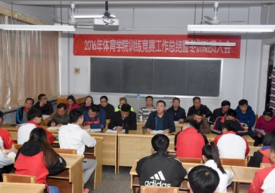球友会2016年训练竞赛工作总结暨冬训动员大会在教学楼六教室召开。公司党委书记李学刚、经理郑旗,田径代表队、女子足球队、健美操代表队、武术套路代表队等11支代表队全体教练员及运动员代表参加了会议。会议由体育教育系副主任张杰主持。