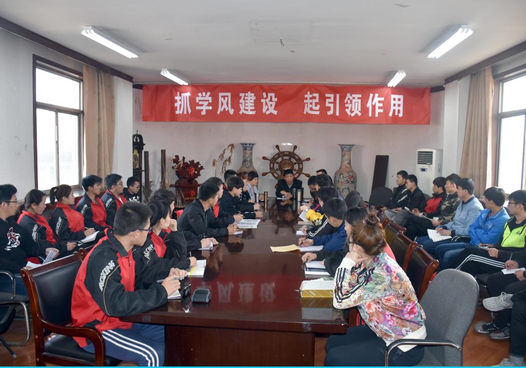 响应公司号召,社会体育系于2017年3月2日下午四点十分在球友会西会议室召开了为时两个小时的学风建设动员大会。出席大会的领导老师有:球友会公司党委书记李学刚老师、社会体育系主任陈乐琴老师、副主任杜治华老师和社体系辅导员杨泽丽、胡奇老师以及社会体育系全体班团干部。
