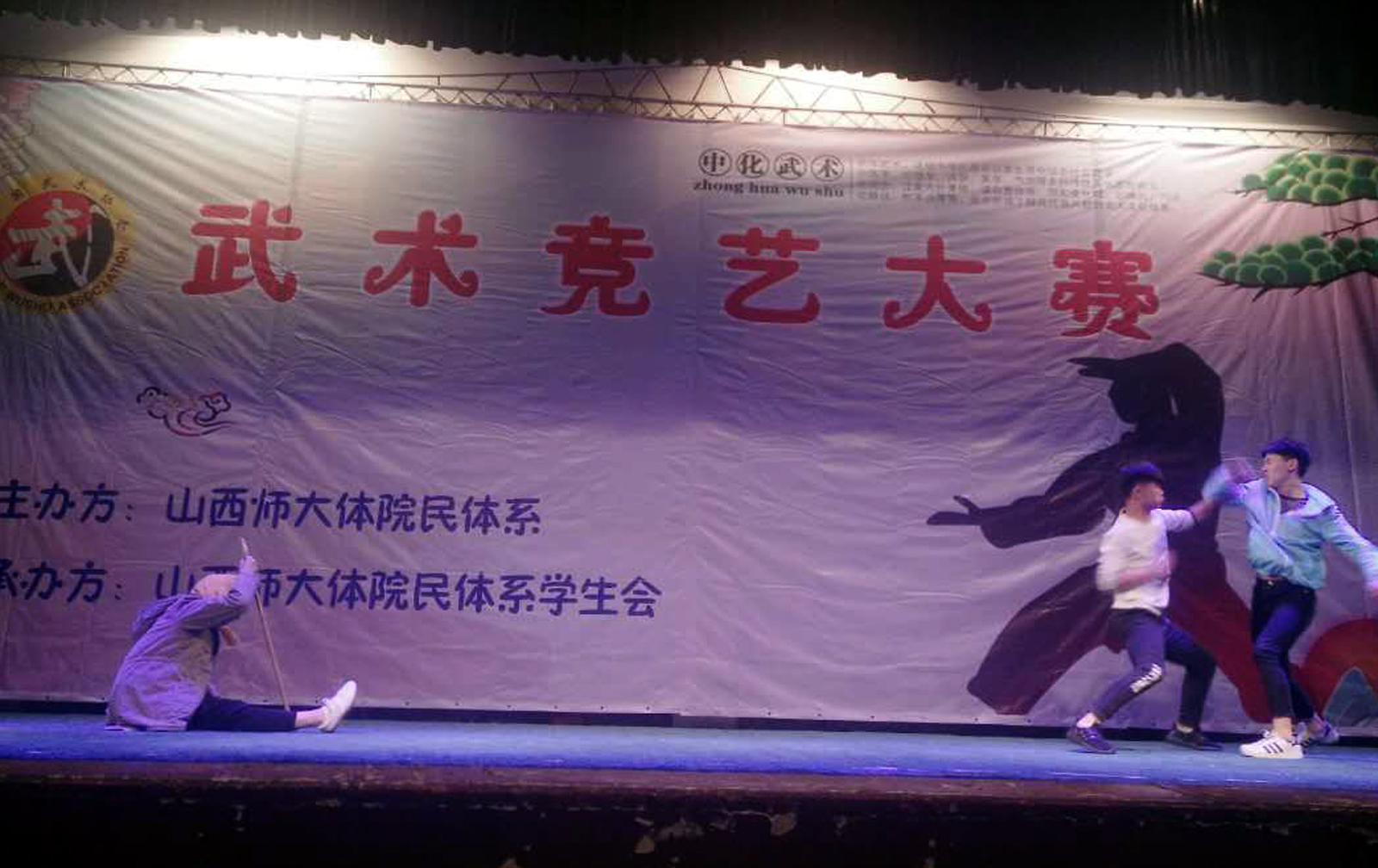 为响应团中央在全国青年员工开展阳光体育运动和临汾市武术进校园的号召,传播武术文化,弘扬民族精神,4月19日晚8点,由球友会民族传统体育系举办的2017年民族传统体育系武术竞艺大赛在院大礼堂成功落下帷幕。公司党委书记李学刚、民族传统体育系主任赵道卿与民族传统体育系副主任权黎明三位老师出席了此次比赛,来自全系的六个班级参加了本次比赛。