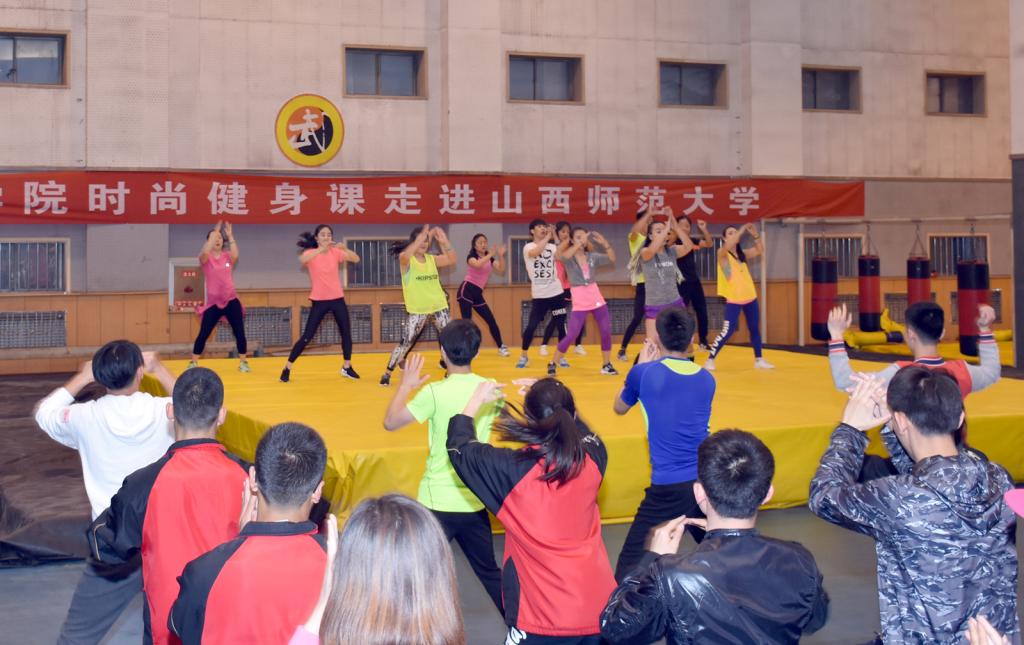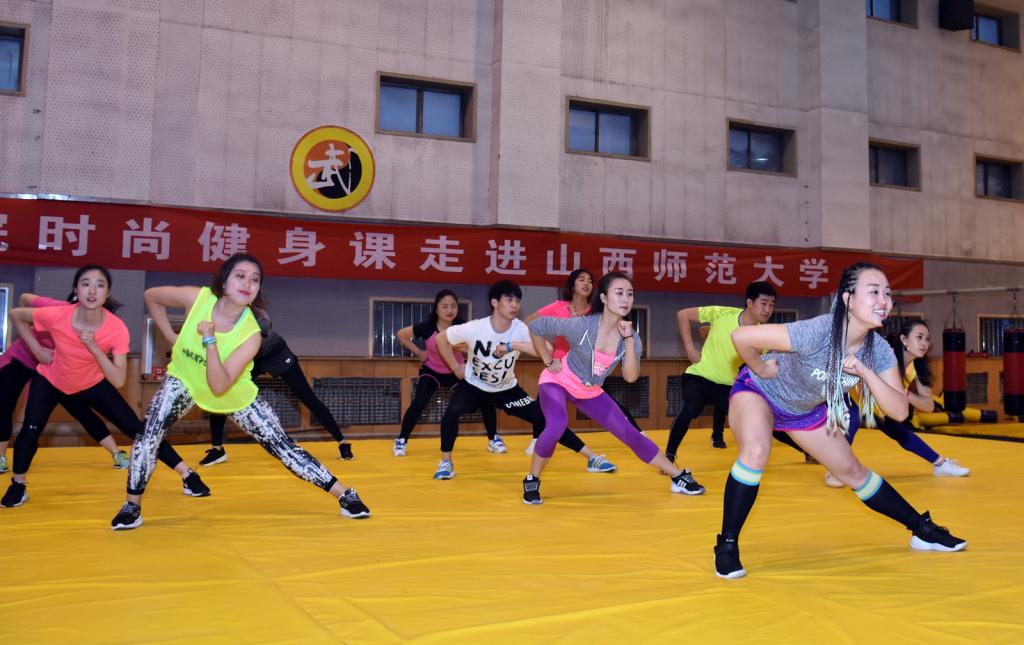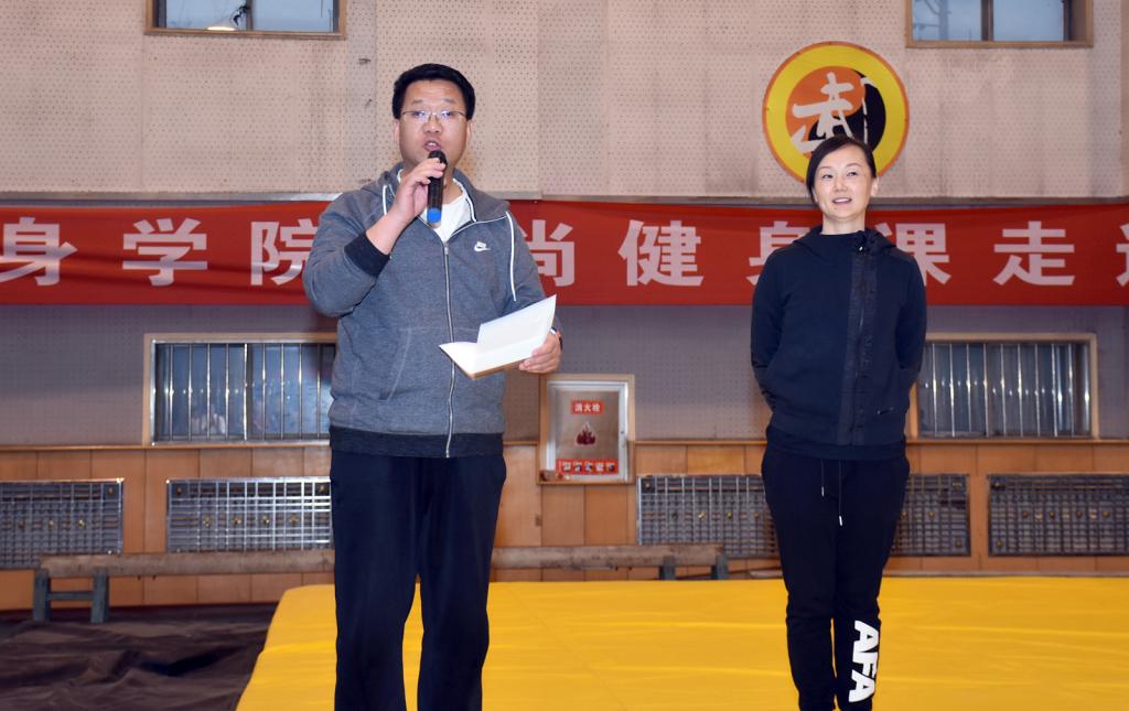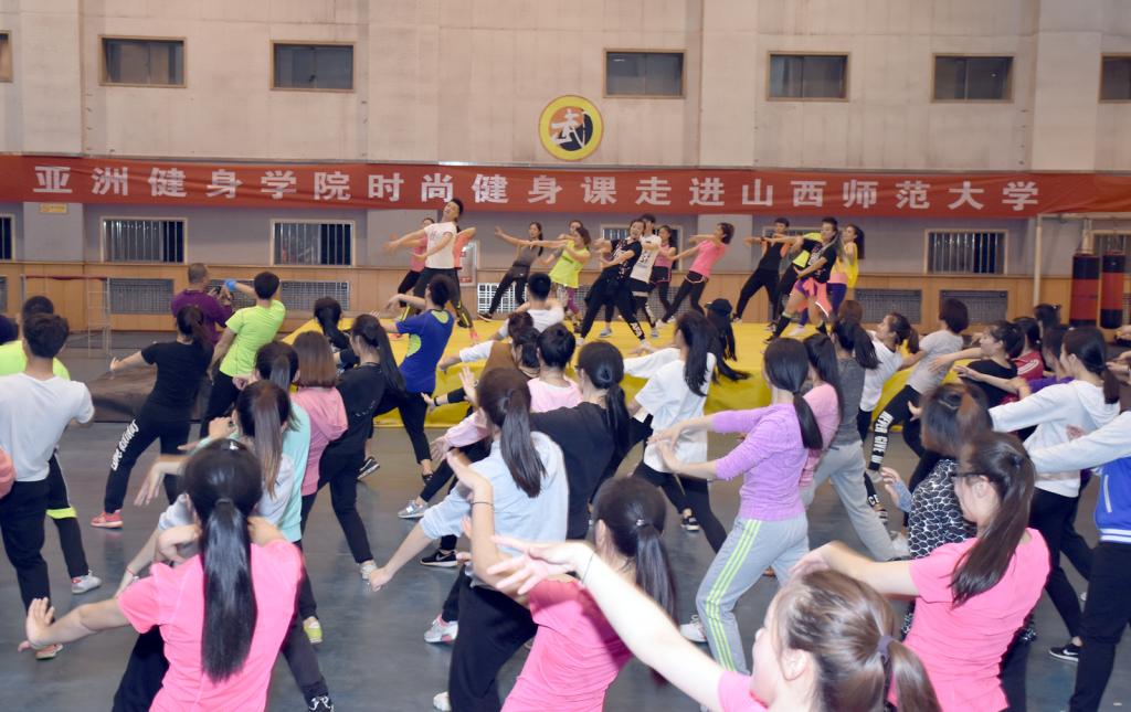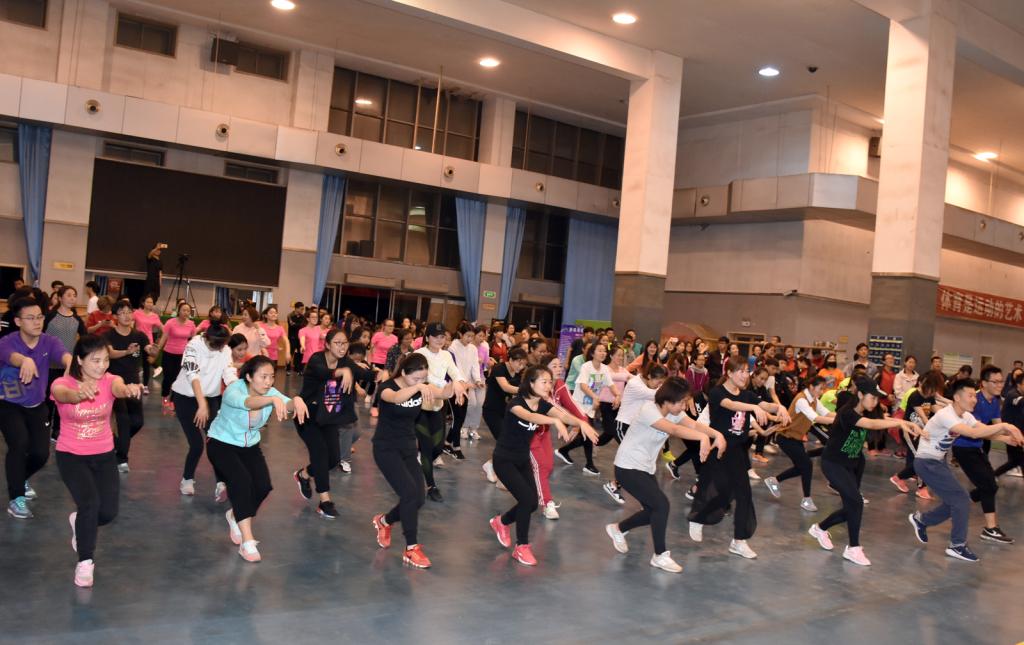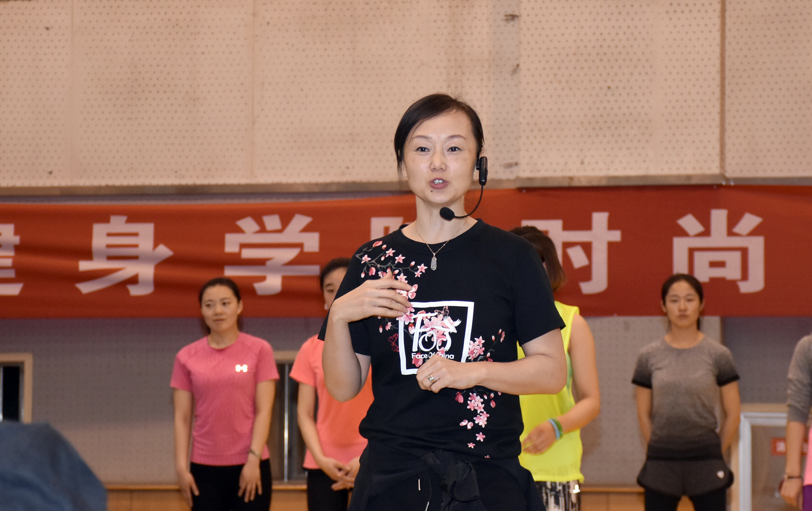 4月12日晚由亚洲健身公司经理程丹彤老师在综合馆内进行了 “时尚健身课程”的公开课。公开课由副经理王彤教授主持,球友会上百名师生参加了公开课。程老师用同学们喜欢的热身操开场,并在欢快、轻松的氛围中指导同学们进行了FOC中国风和CARDIO有氧心肺的课程体验,每个人都完全沉浸在了动感的健美操世界里,让在场的师生们领略到健美操大师的风采并感受到健美操的独特魅力。