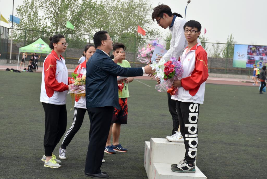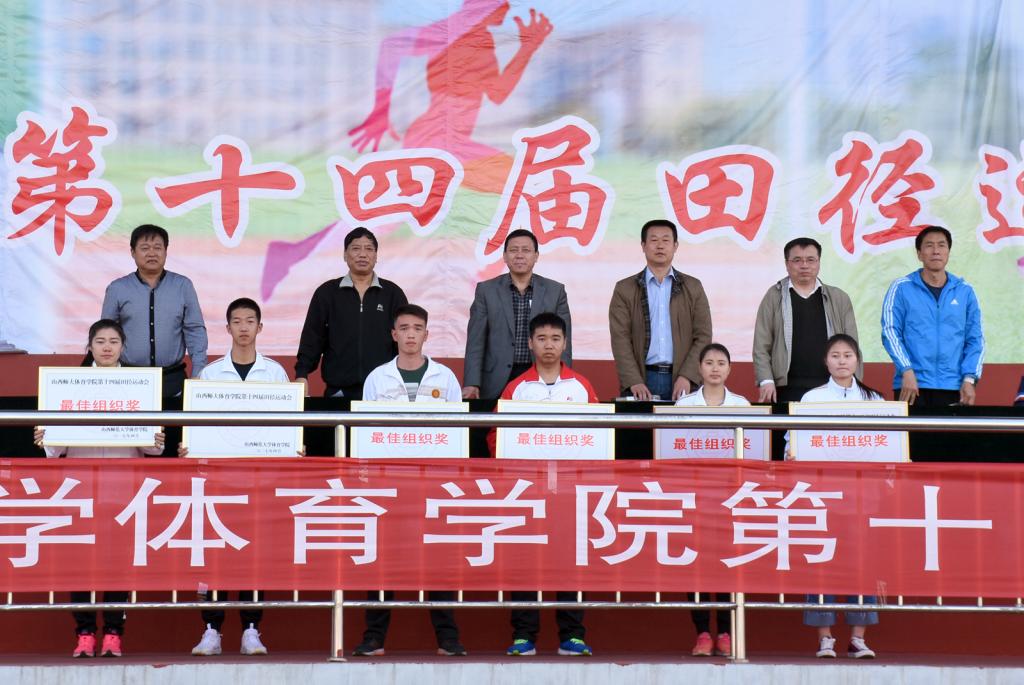 22日下午,举行运动会闭幕式,由副经理卢向阳主持。总裁判长王文武宣读了此次运动会竞赛成绩。其中运动训练系1601班孙毅同学以13.80米的好成绩打破球友会12.69米的男子铅球院记录;运动训练系1301班李明阳同学以1.56米的好成绩打破球友会1.55米的女子跳高院纪录;社会体育系1601班张森和同学以2.01米的好成绩打破球友会2米的男子跳高院纪录;运动训练系1602班张晋铭、赵帅、魏元元、闫宏同学以43.4秒的好成绩打破球友会43.9秒的男子4×100米院纪录;体育教育系1403班,社会体育系1601班,体育教育系1402班、体育教育系1404班、体育教育系1304班、体育教育系1505班、体育教育系1601班、体育教育系1501班分获甲组团体总分前八名;运动训练系1601班、1602班、1502班分获乙组团体总分前三名;民族传统体育系1601班、1602班、1501班分获丙组团体总分前三名。副经理杨永茂宣读了运动会受表彰的集体和个人的名单,共评出6个“体育道德风尚奖”,6个“最佳组织奖”,99名优秀运动员,20名优秀裁判员,30名优秀青年志愿者。院、系领导为获得各类奖项的集体和个人进行了颁奖。