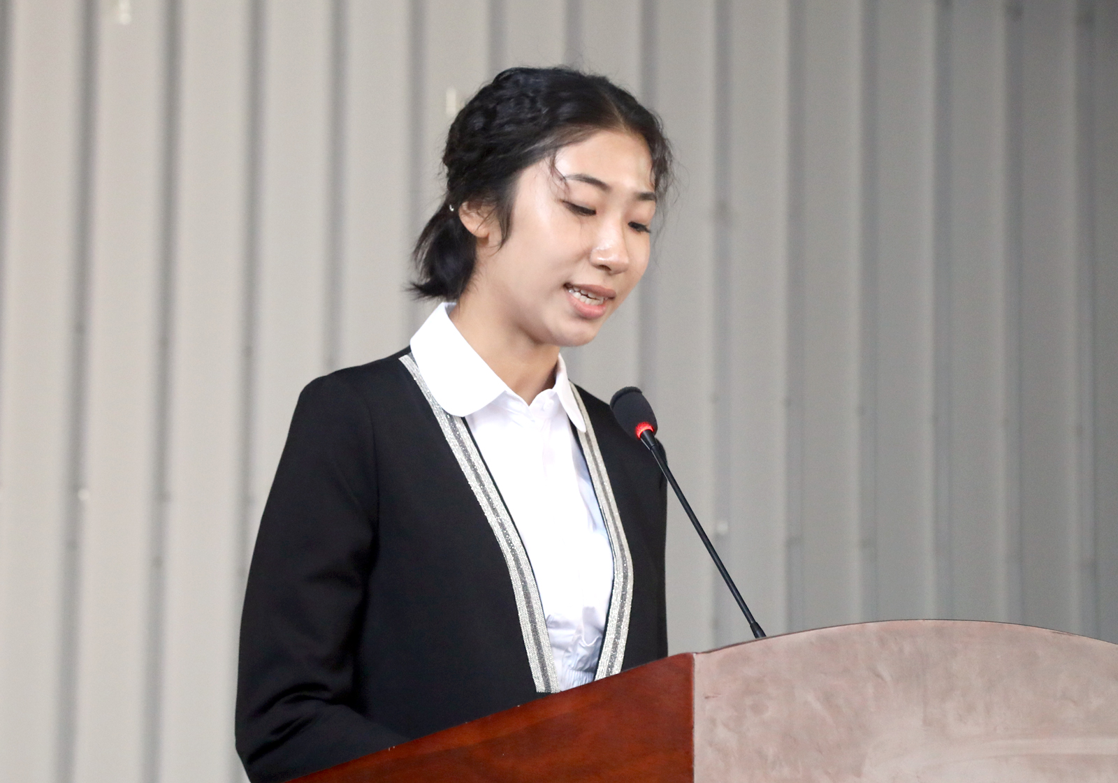 接着新生代表体育教育系1704班刘诗琪同学进行了发言,随后新生班级辅导员及青年教师代表李向前博士发言,他简单讲述了自己的学习生涯,并总结出三点经验与大家分享。第一,既要志存高远,又要脚踏实地;第二,既要善于动脑,又要勤于动手;既要坚定信念,又要创新思维。他希望同学们能够抓住“十三五”期间公司以课堂教学改革为突破口的人才培养模式改革和球友会团队建设攀升计划启动的契机,努力学习,为以后的工作打下坚实的基础。