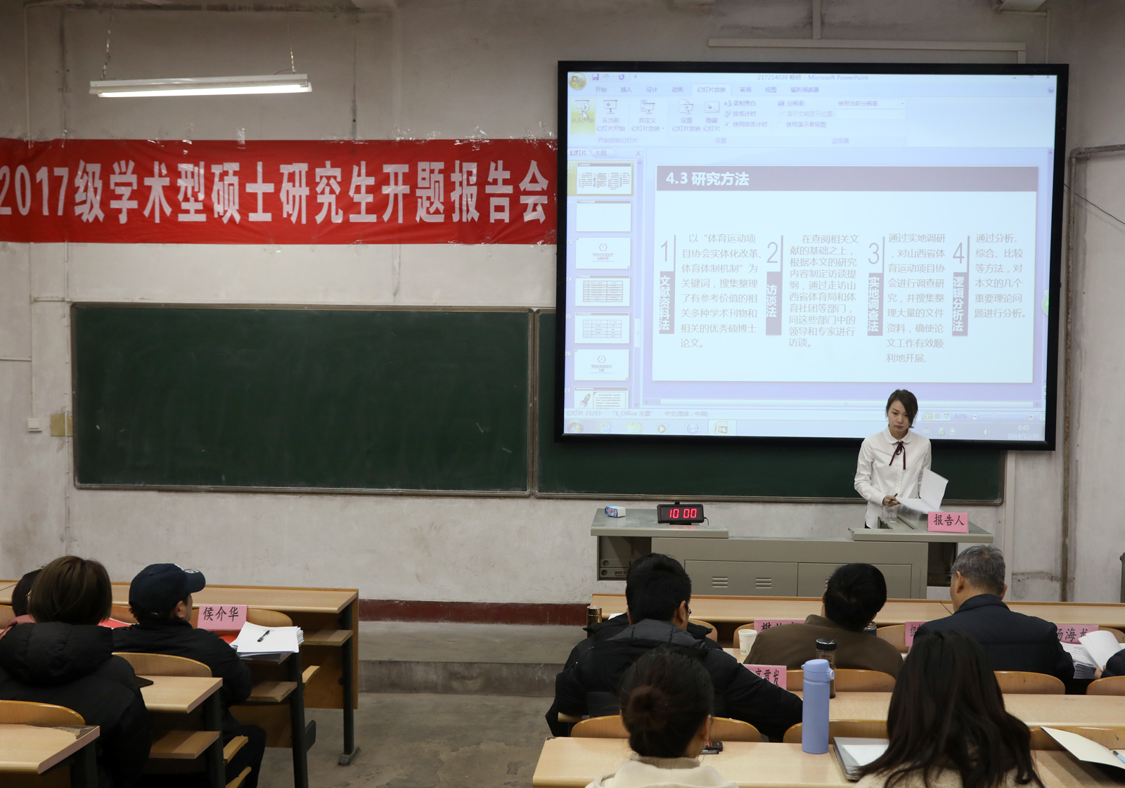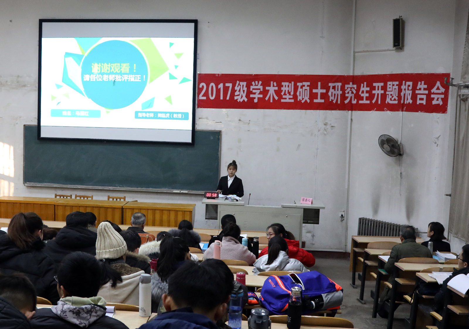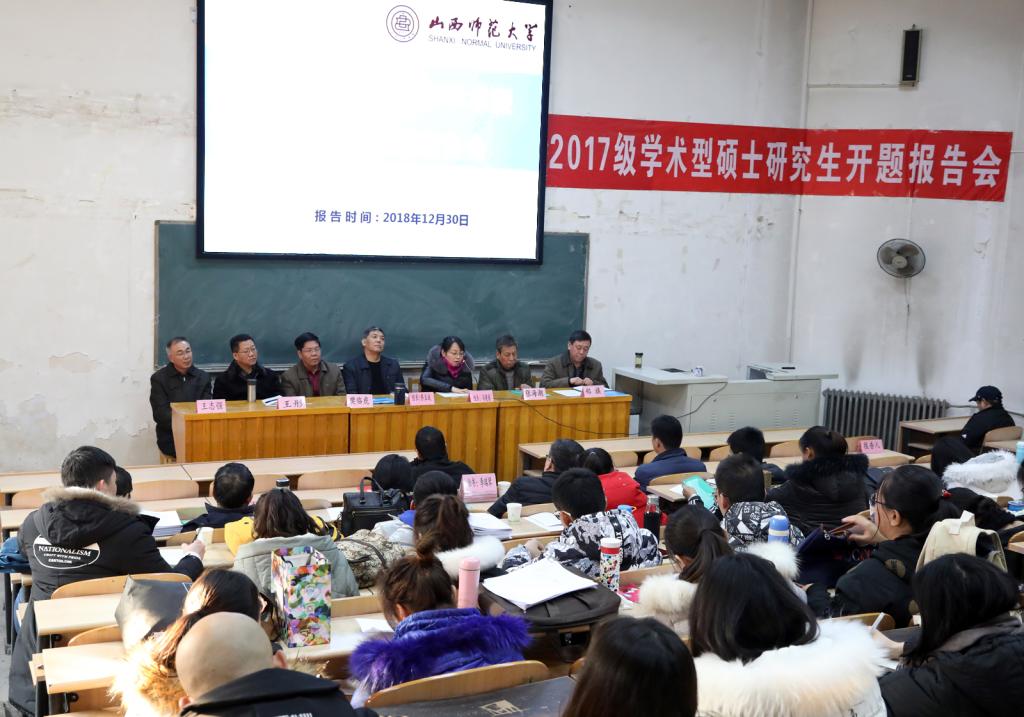2018年12月30日,在球友会阶梯一、二教室举行了2017级学术型硕士研究生开题报告会。报告共分两个单元,17位专家对38名硕士研究生的论文开题报告进行了讨论与评议。2017级全体研究生及部分导师参加了本次开题。参加本次开题的38名硕士研究生以PPT的形式,逐一分别从选题依据、选题目的意义、文献综述、研究对象与方法、研究内容、技术路线图、进度安排、预期达到研究成果、参考文献等方面进行了详细陈述。专家们针对每位研究生论文开题的具体情况提出了中肯的意见与建议,并对各位研究生论文选题的可行性进行了讨论。