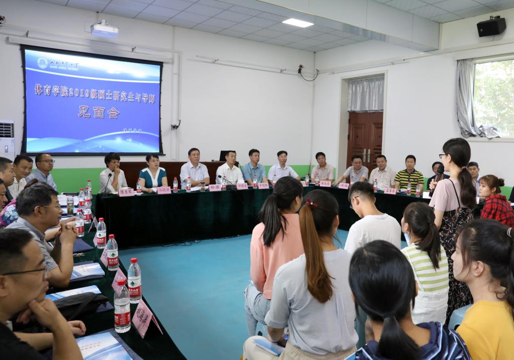 副经理陈乐琴副教授首先介绍了出席见面会的各位导师基本情况及各自的研究领域,2019级硕士研究生从个人基本情况、毕业院校及专业、录取专业与攻读方向等方面进行了自我介绍。接下来,院研究生部主任李海伟副教授从公司学术型、专业型两类研究生导师数量、师生互选、指导数量、培养目标、研究方向、学习年限、课程设置与教学计划、奖学金设置和评定方法,毕业和学位授予等方面解读了《体育学一级学科硕士公司产品方案》和《体育硕士专业学位公司产品方案》。