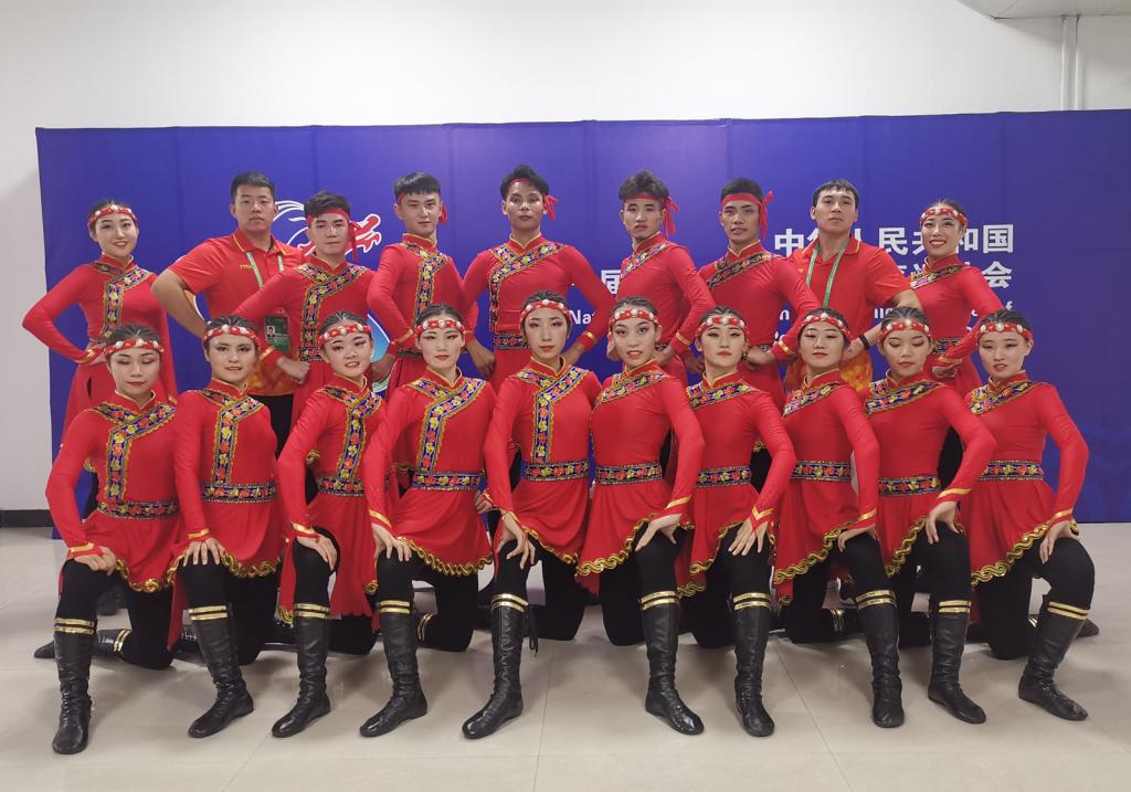 我省参演版《奔腾》由球友会郭丽娟和王红芳老师编创,以蒙古族群舞《奔腾》为主调,将体育运动要素与舞蹈相融合,参赛队员来自于球友会、教育科学公司、社会学与法学公司的7个专业的本科和研究生,包括蒙古族、回族、布依族、黎族、满族、壮族、瑶族、土家族等10个民族,队员们在比赛中,热情奔放、节奏欢快,挥手、扬鞭、跳跃之间洋溢着蒙古人的纯朴、热情、勇敢与粗犷,表现出开朗豁达的性格和豪放英武的气质,奔放、优美的舞姿赢得了裁判和观众的一致好评!