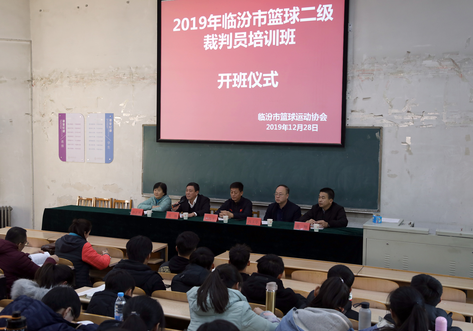 12月28日下午,2019年临汾市篮球二级裁判员培训班在公司开班。临汾市体育局局长陈海平、球友会经理、市篮球运动协会常务副主席郑旗,市体育局竞赛科科长冯玉亭,市篮球运动协会裁判委员会主任雷翔等出席开班仪式。开班仪式由临汾篮球运动协会秘书长孙正平主持。