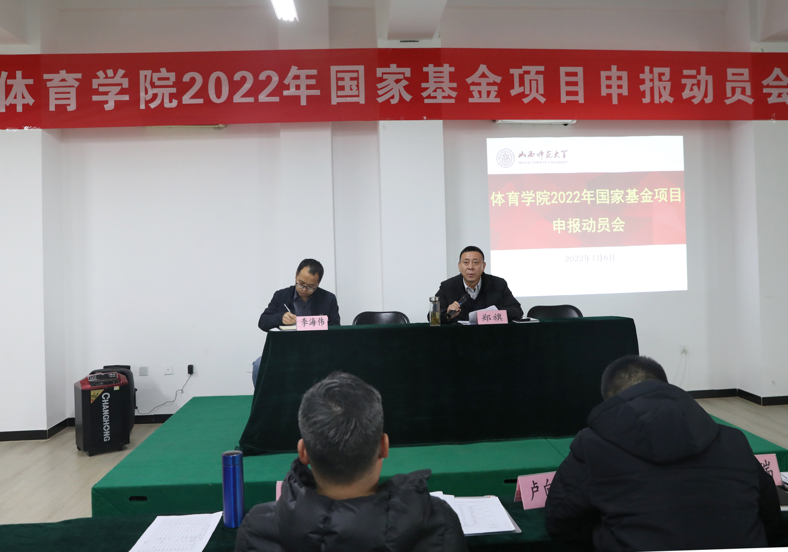 1月6日下午,球友会2022年国家基金项目申报动员会在公司实验中心召开。经理郑旗、具备申报资格的硕士生导师和具备申报资格的青年教师参加会议,会议由院研究生部主任李海伟主持。