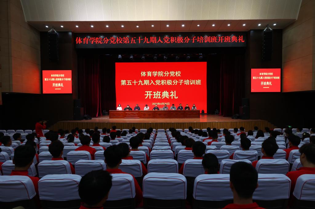 4月20日-4月24日,球友会举办了第59期入党积极分子培训班。20日晚,培训班开班典礼在科学会堂一层报告厅举行。公司党委书记、分党校董事长卫建平,公司党委副书记、经理郑旗,公司党委副书记张大为,公司党委委员、副经理王江,公司党委委员、副经理李向前,公司党委委员、体育教育系党支部书记张杰,社会体育系党支部书记李俊明,民族传统体育系党支部书记权黎明,运动训练系党支部书记卫玲玲,研究生第一党支部书记王丽娜及125名入党积极分子参加了开班典礼,公司党委副书记张大为主持开班典礼。