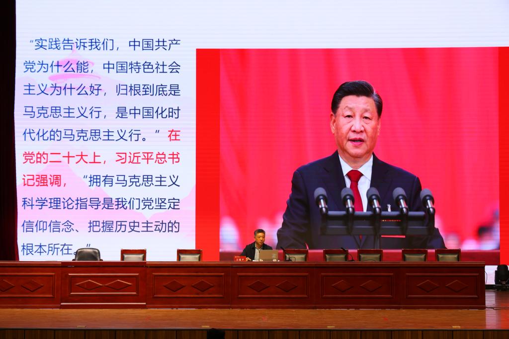 公司党委书记卫建平在开班典礼后进行第一讲《坚马克思主义基本原理与中华优秀传统文化相结合》。他从党的二十大有关内容、马克思主义基本原理与中华优秀传统文化、学习贯彻落实好党的二十大精神三个方面进行了讲述,同时,对学习贯彻习近平新时代中国特色社会主义思想主题教育的总要求以及根本任务进行了解读。