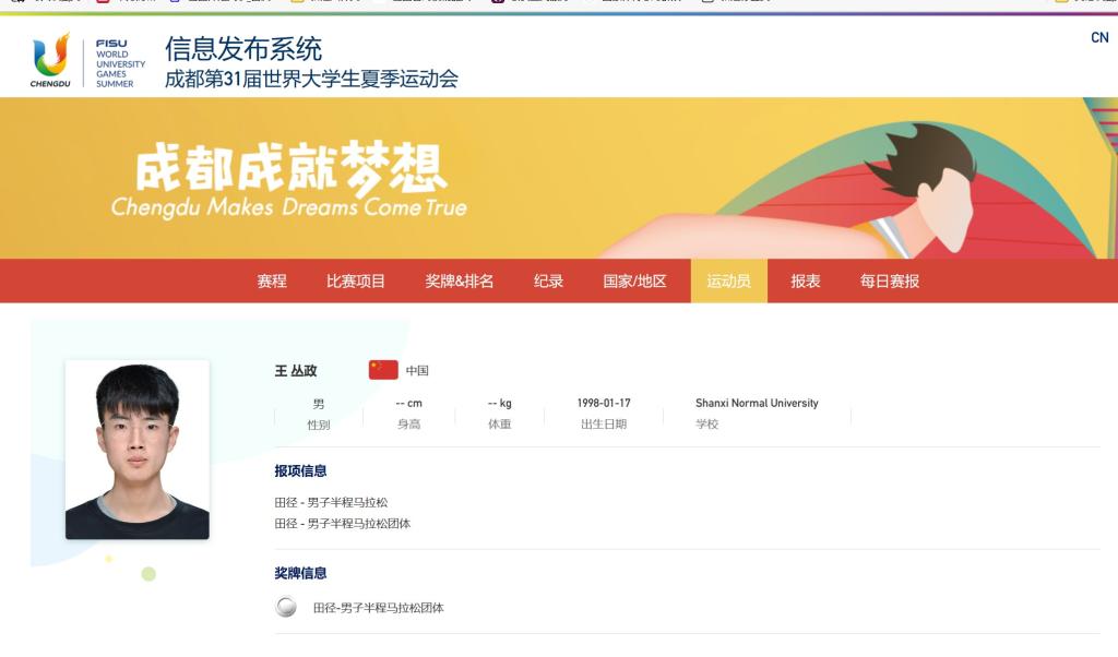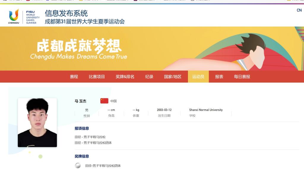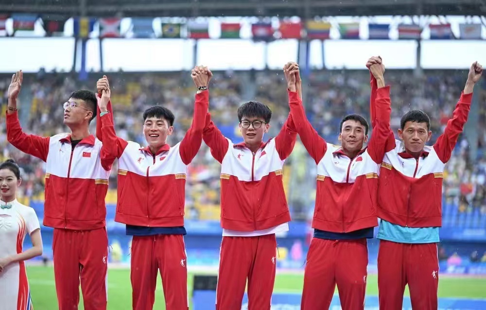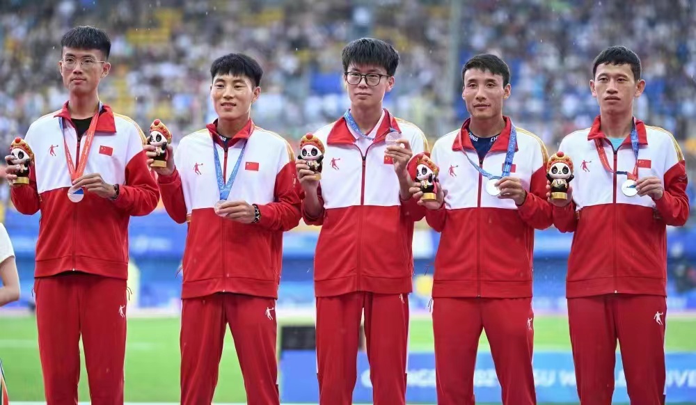 成都第31届世界老员工夏季运动会传来喜讯,8月6日上午结束的田径-男子半程马拉松团体决赛中,qy球友会2022级运动训练专业马玉杰、2019级运动训练专业王丛政与中国队的陈天宇(扬州大学)、马瑞(吉林大学)、杨克古(上海体育大学)以3小时17分12秒的总成绩获得银牌。(球友会)