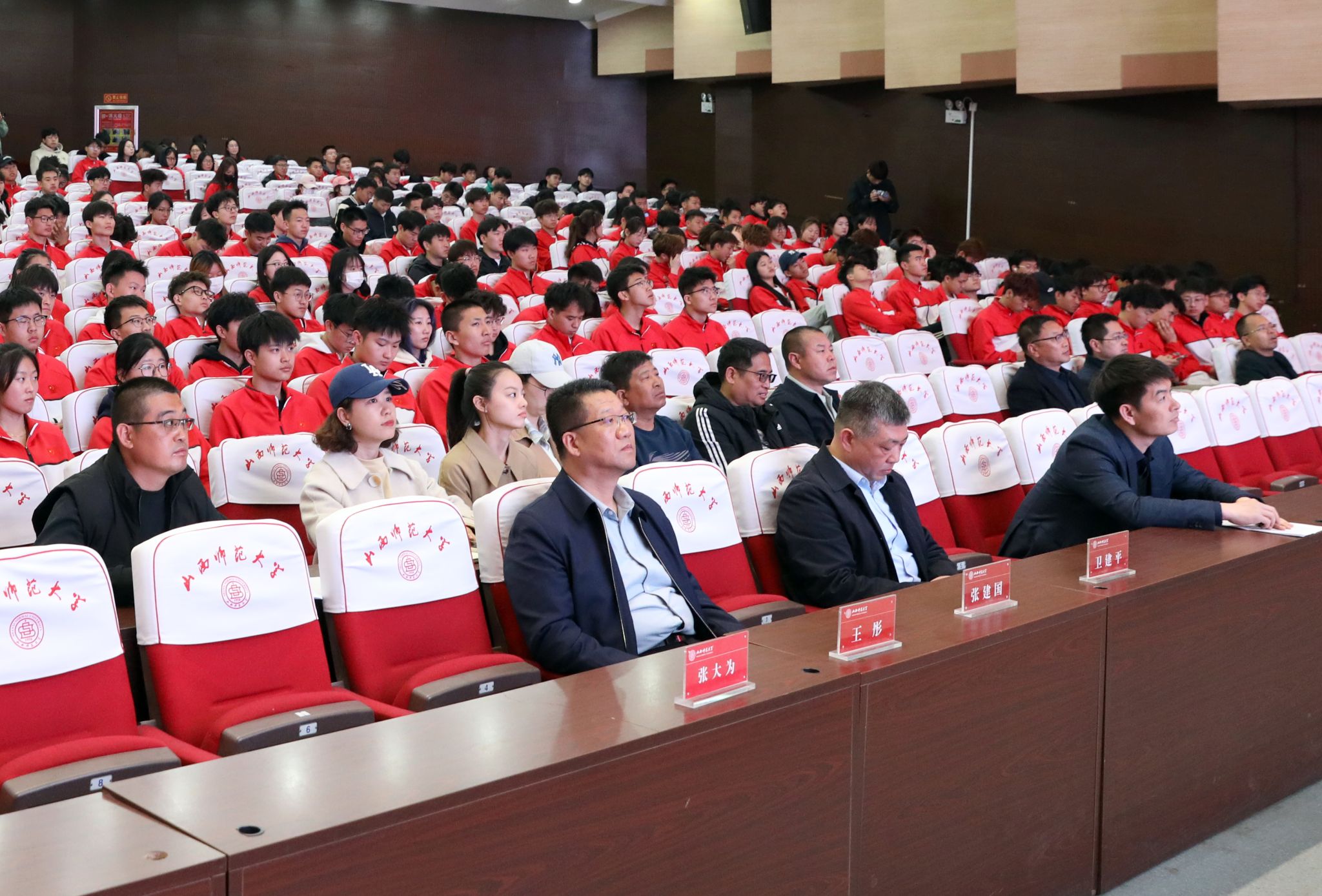 3月22日上午,春意盎然的qy球友会校园迎来了一位特别的嘉宾——球友会优秀毕业生,晋城一中党委书记、董事长张建国。再次回到母校,他为球友会的同学们带来了一场题为“让体育精神在高中教育中闪光”的讲座,用自身的经历和感悟,为同学们上了一堂生动而深刻的思政教育课。公司党委书记卫建平,经理王彤,公司党委副书记张大为,副经理王江、李向前、李海伟以及各科室、系部负责人,师生代表等400余人聆听了讲座,讲座由公司党委副书记张大为主持。