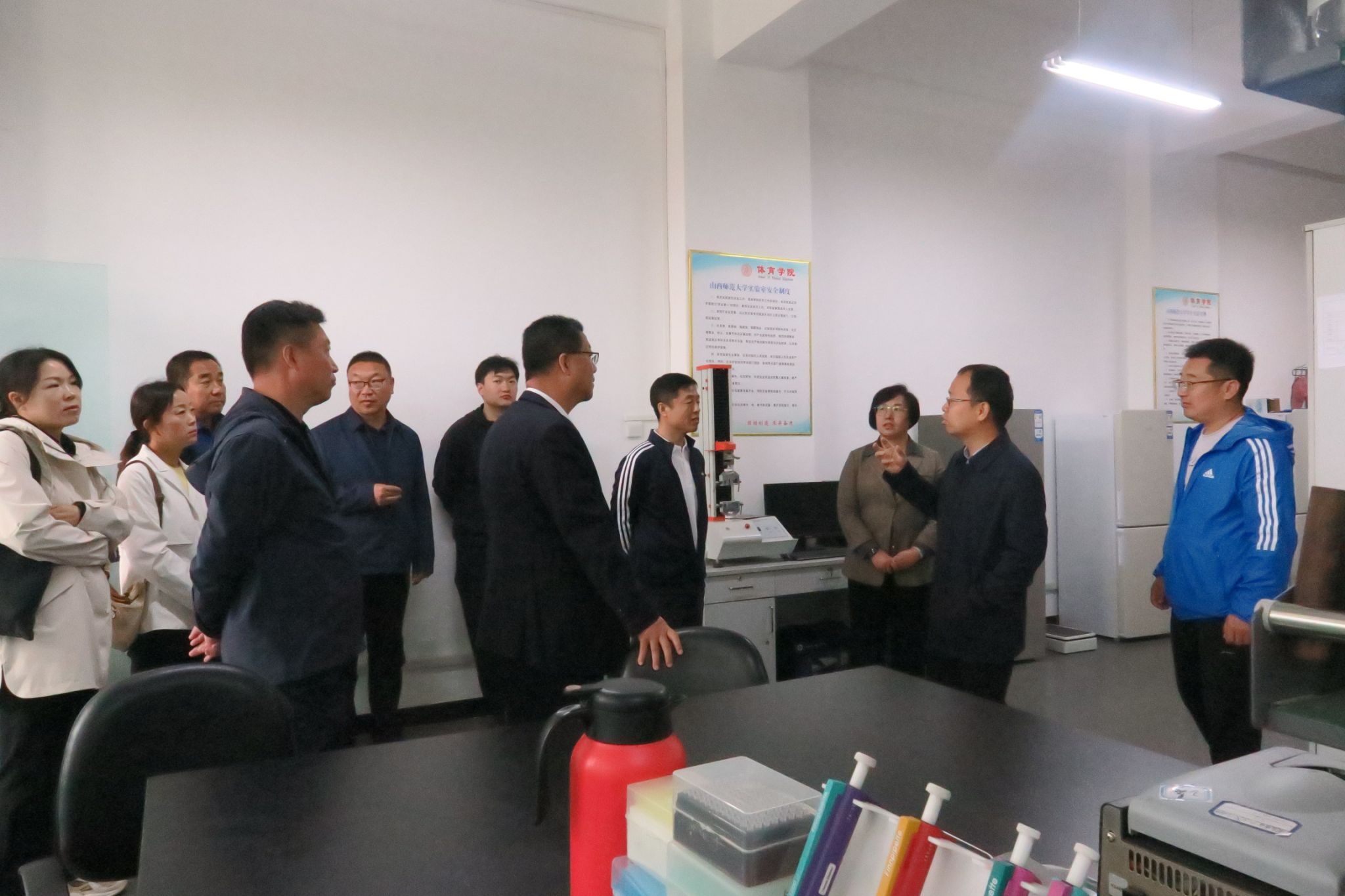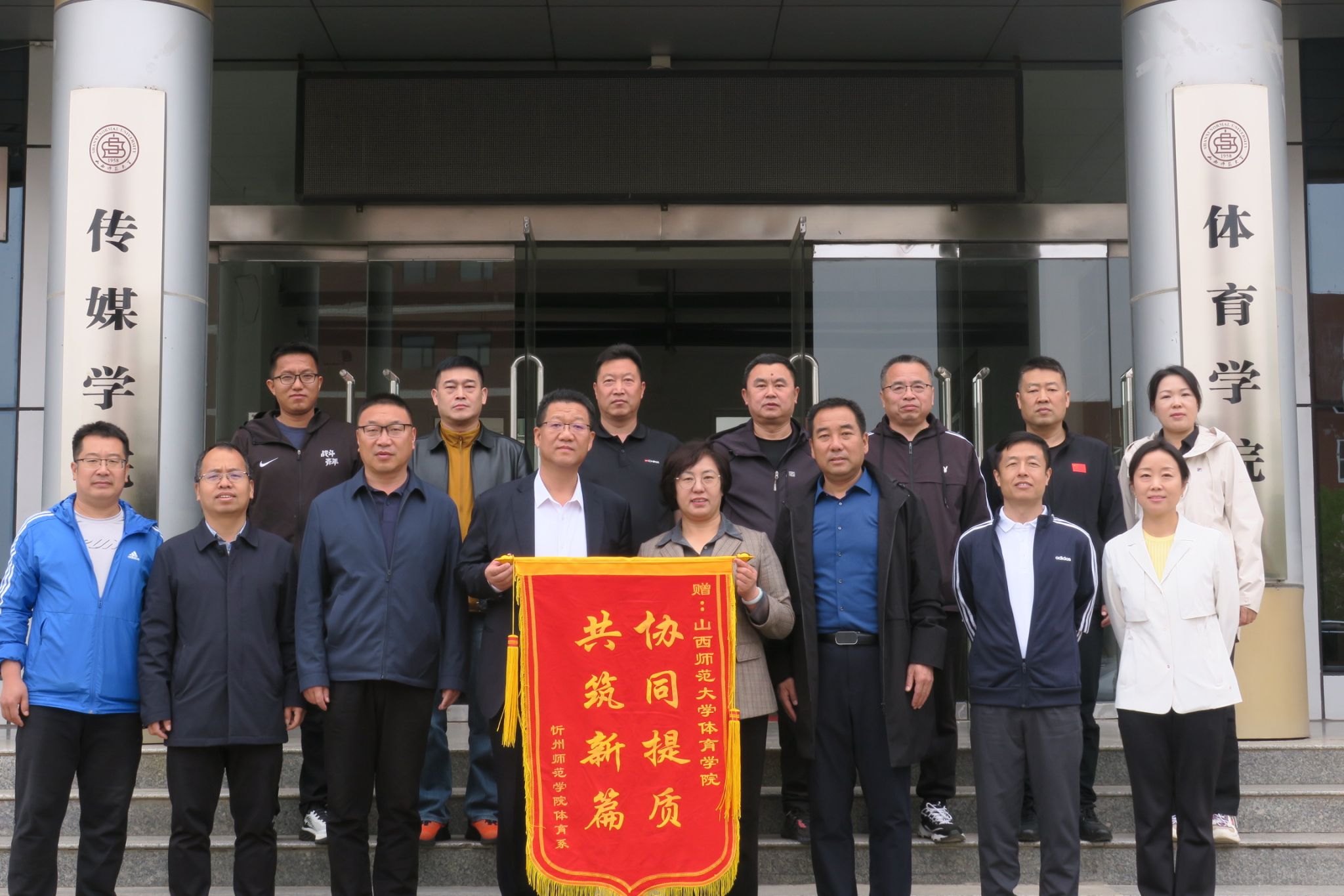 双方在虚拟教研室建设达成初步共识后,忻州师范公司体育系樊青美书记向公司敬赠锦旗,并进行合影留念,随后樊书记一行参观了公司的VR实验室与运动生物力学实验室和混合式教学工作室,对公司实验室近年来的建设和国家一流课程的建设的工作给予了肯定,对《排球专项理论与实践》的课程理念、课程内容、教学模式等方面给予了高度评价,表示要将一流课程建设经验分享到忻州师范公司。