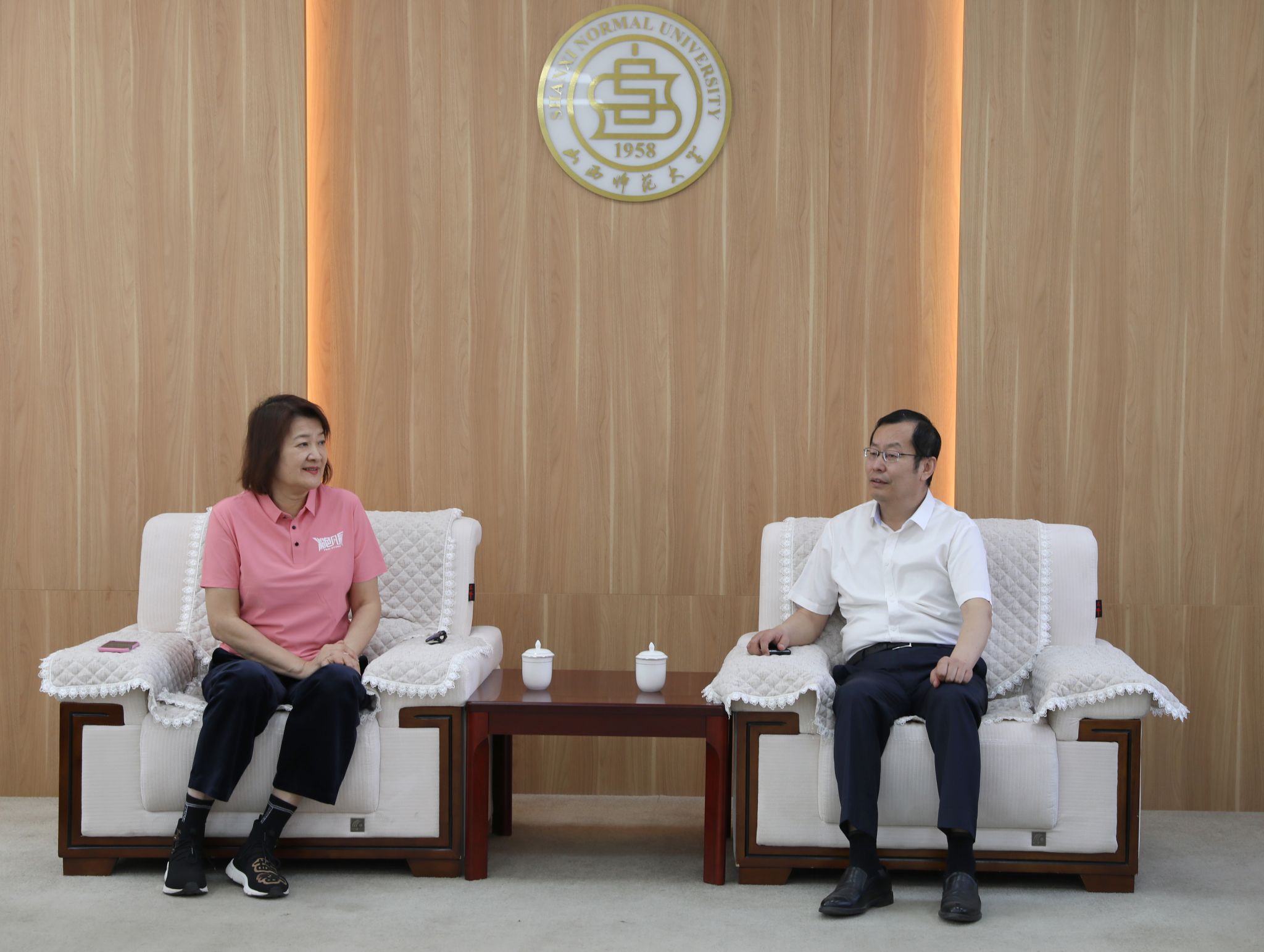 宋晓波女士分享了她的运动经历、服务社会公益的情况以及与球友会开展“粉色风暴”篮球项目合作的美好愿景。盛云飞详细的介绍了粉色风暴女子篮球队的相关情况,并详细分析了开展合作的项目优势、基本思路和发展规划。双方就体育思政大讲堂“体育名人讲堂”系列讲座、高校高水平篮球队队伍建设,以及粉色风暴篮球进校园等合作内容进行了深入讨论,并对未来开展体育教育和篮球运动推广达成了初步合作意向。