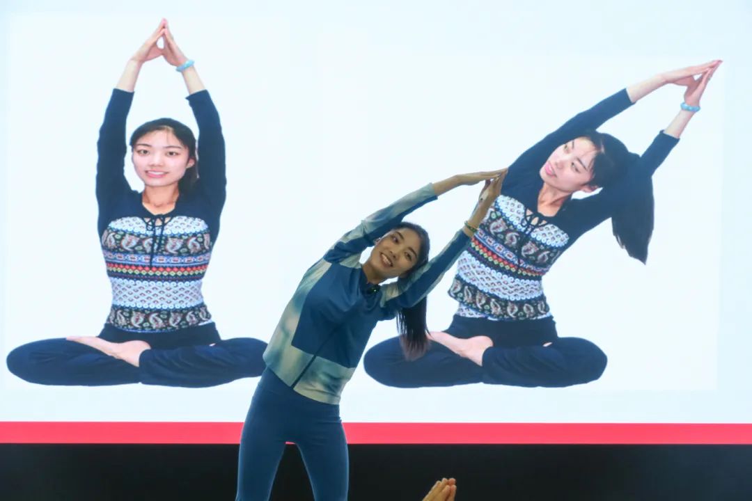 皇甫立慧老师以其深厚的教学积淀和充满活力的教学风格,赢得了在场师生的广泛赞誉。她深刻剖析了瑜伽呼吸的精髓、技巧及其与体式、音乐的和谐共生,通过亲身示范与详尽讲解,使师生们深刻领略了瑜伽呼吸的无穷魅力。在她的引领下,师生们纷纷跟随节奏,调整呼吸,感受身心的和谐与平衡。